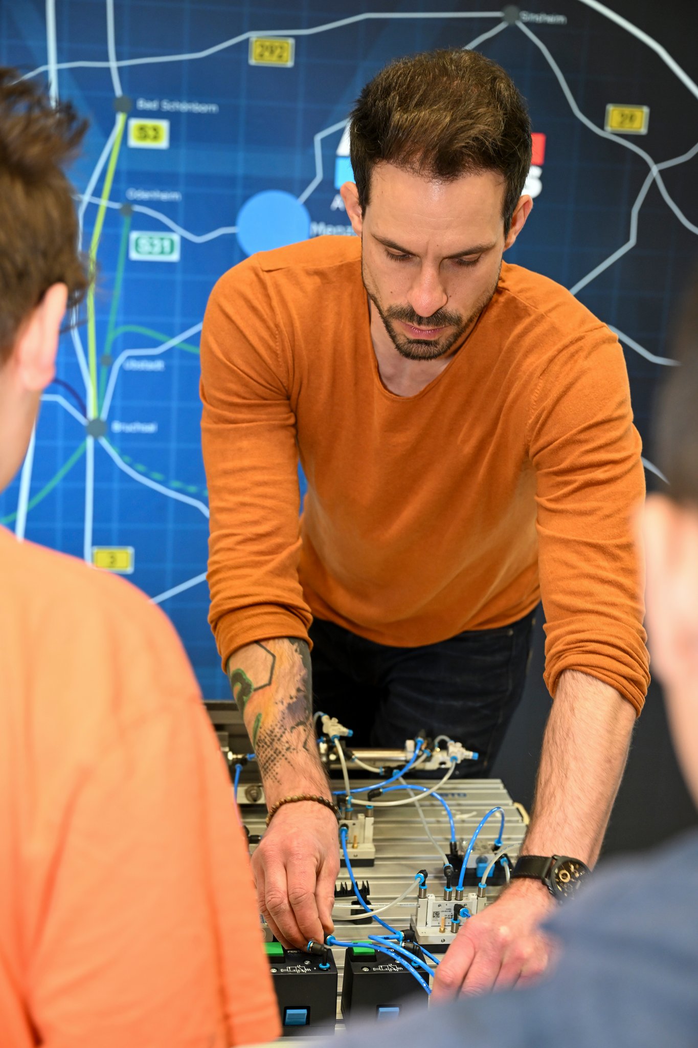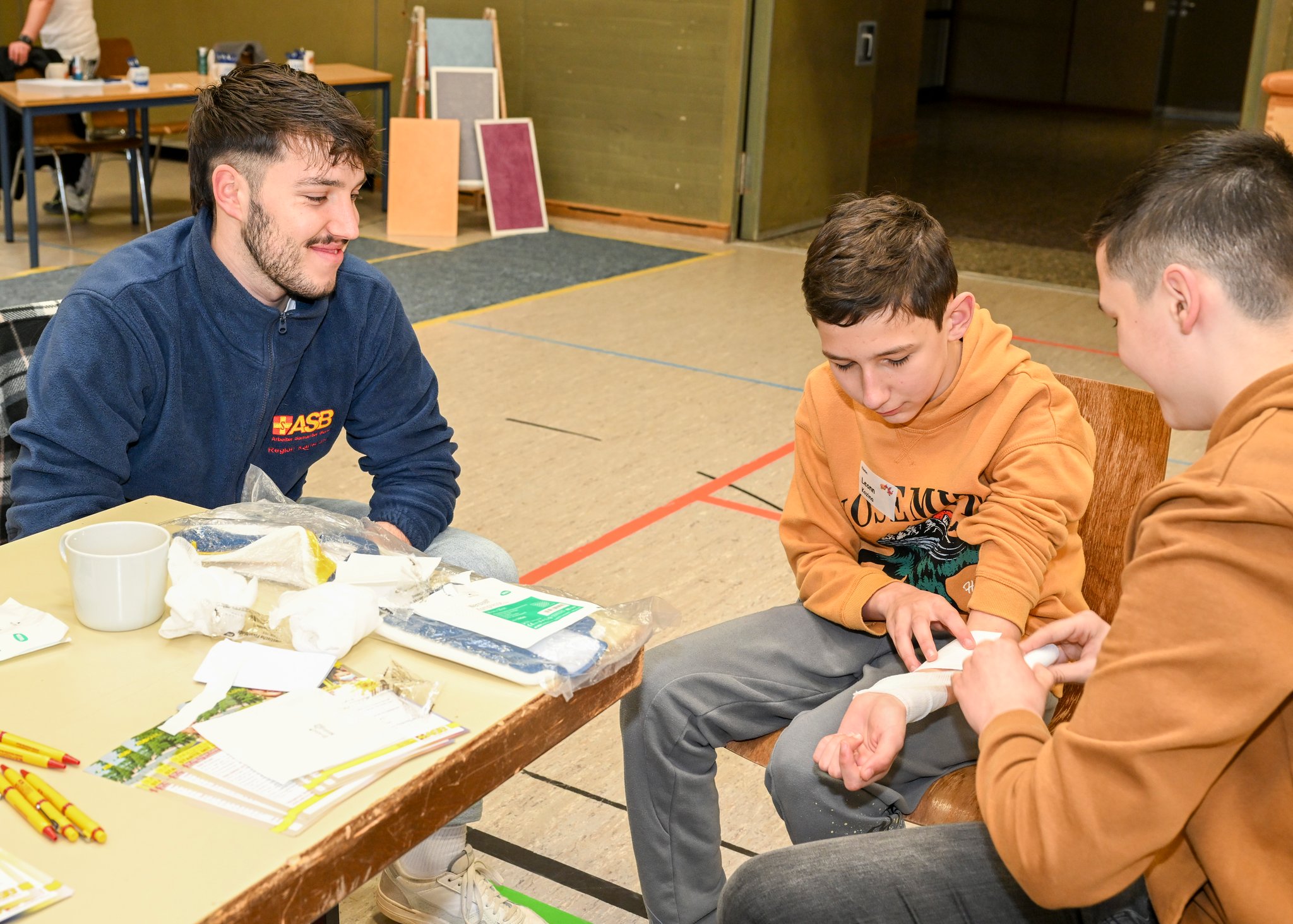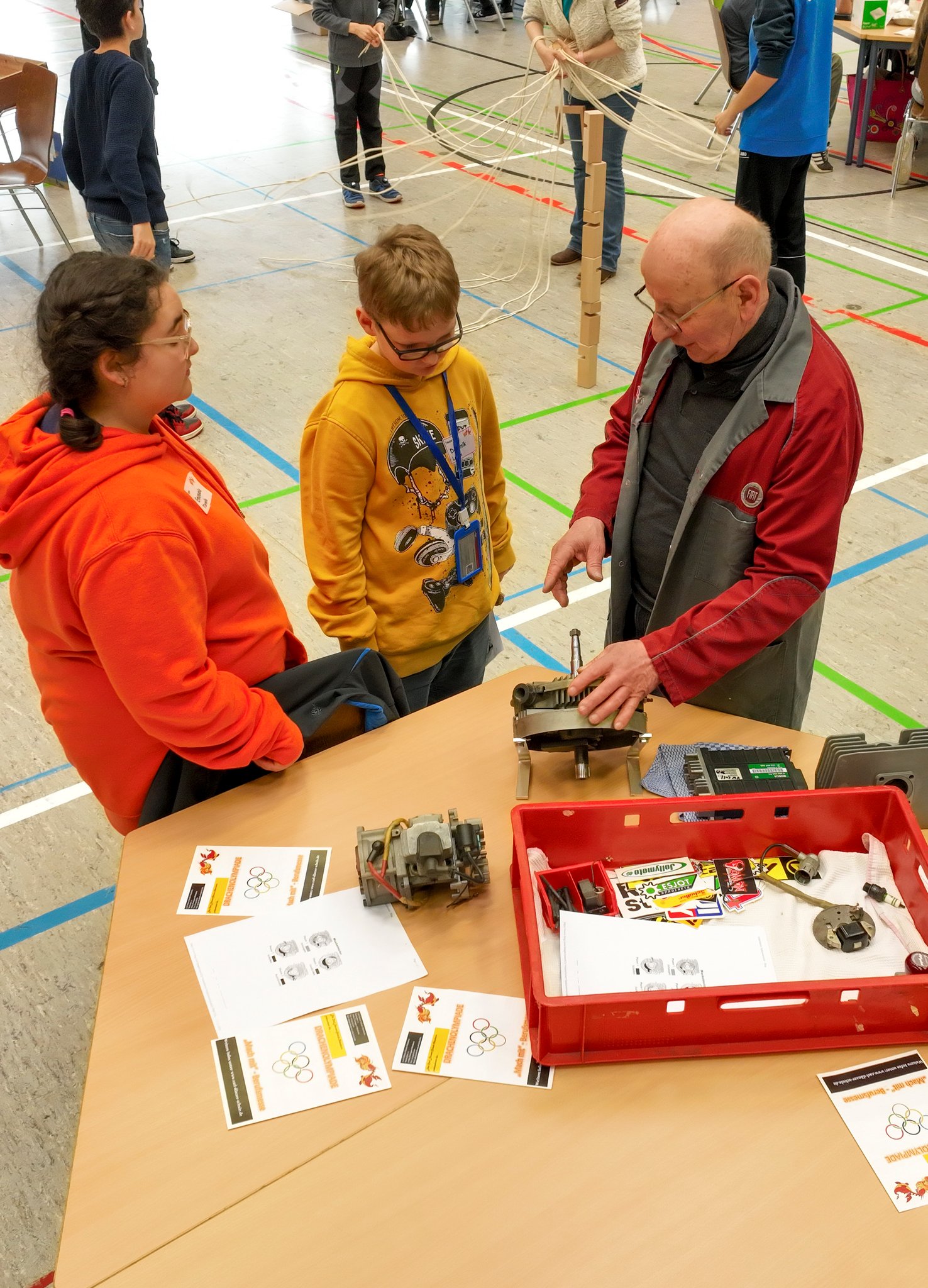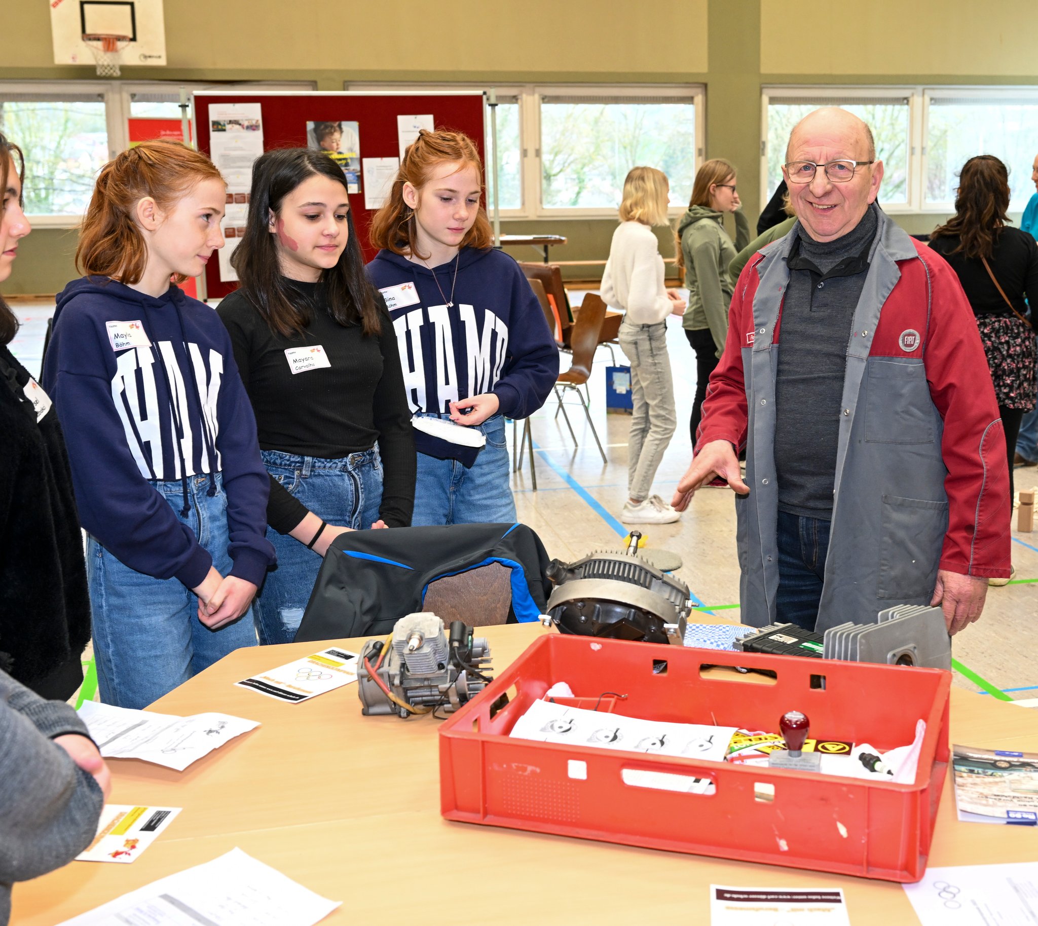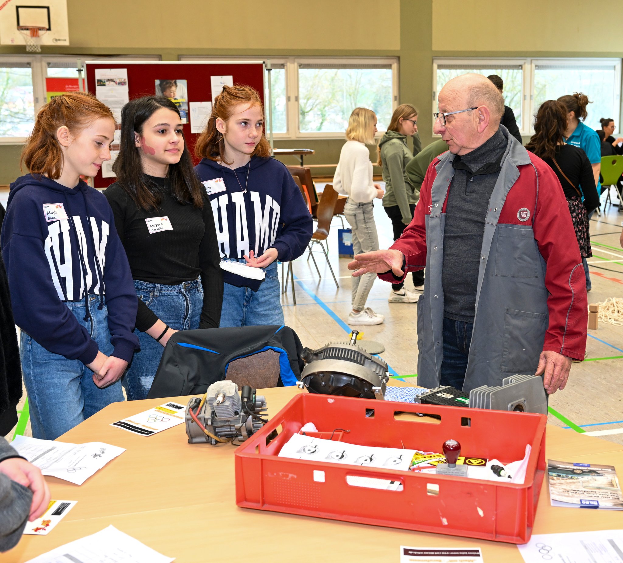 An jedem Stand verweilen die Kleingruppen etwa 30 Minuten. Dabei erklärt der Standbetreiber ihnen Grundlegendes zum Berufsfeld und stellt sich vor. Danach gibt es überall eine praktische