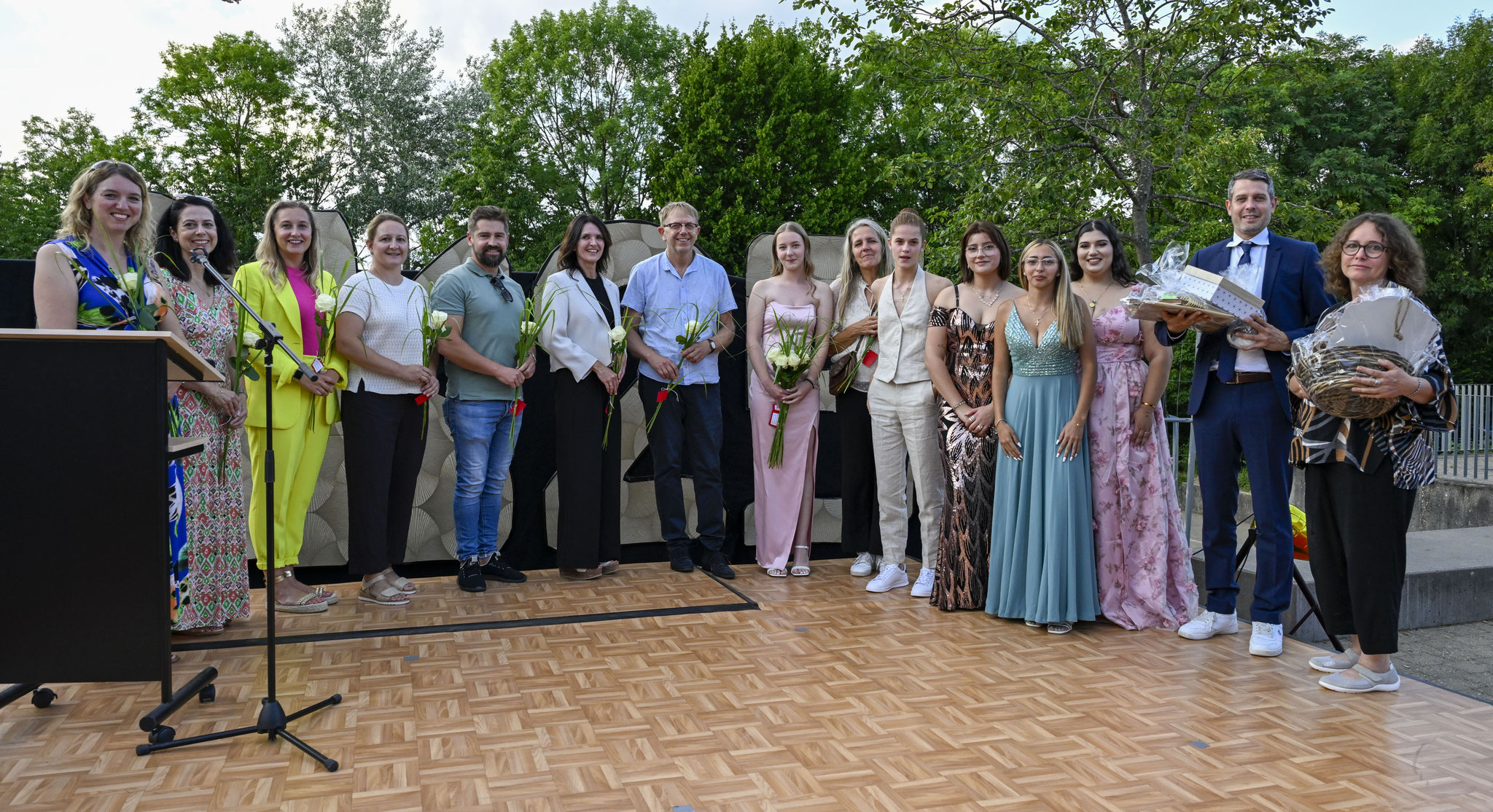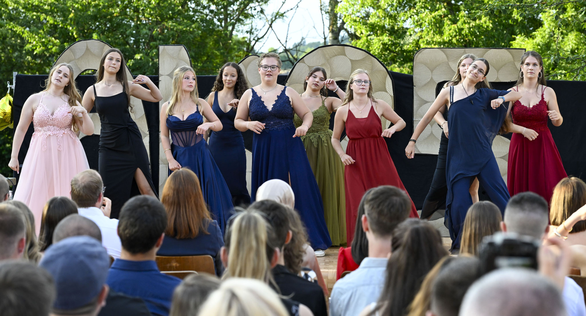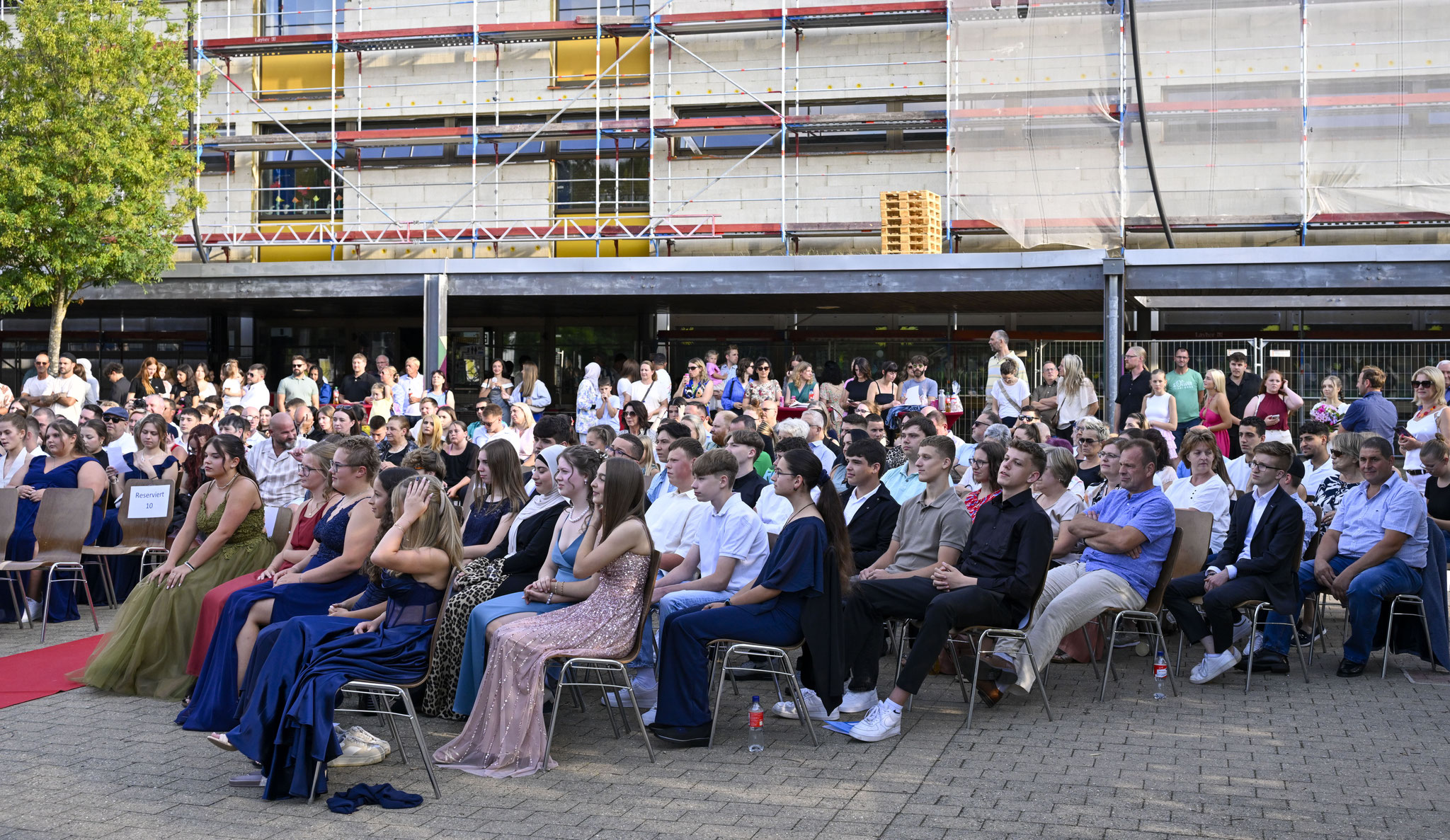 und mit einem tollen Bühnenbild ausgestattet, erstrahlte der obere Schulhof am Abend des 17. Juli 2025 in ganz besonderem Glanz - umso mehr, als schließlich alle Absolventinnen und Absolventen