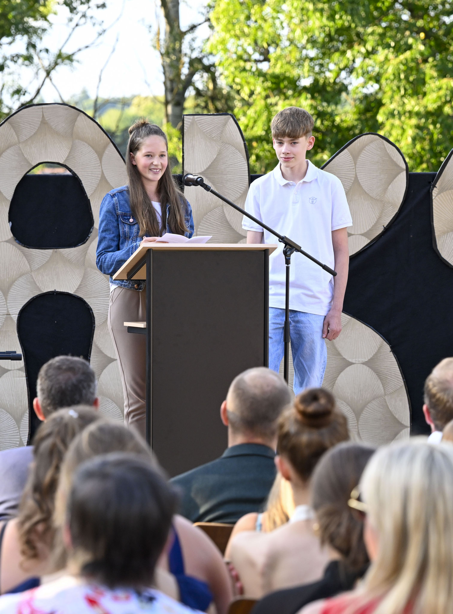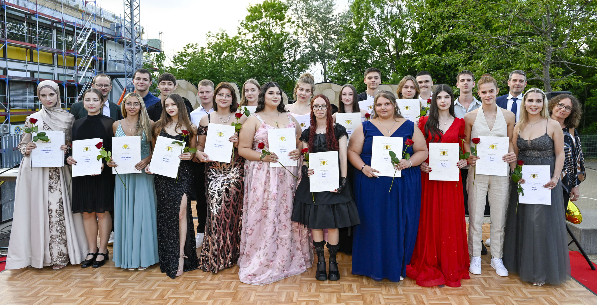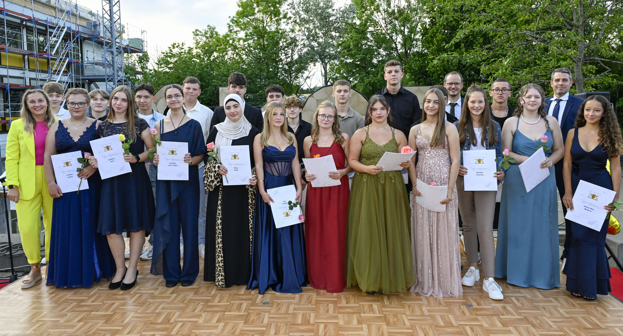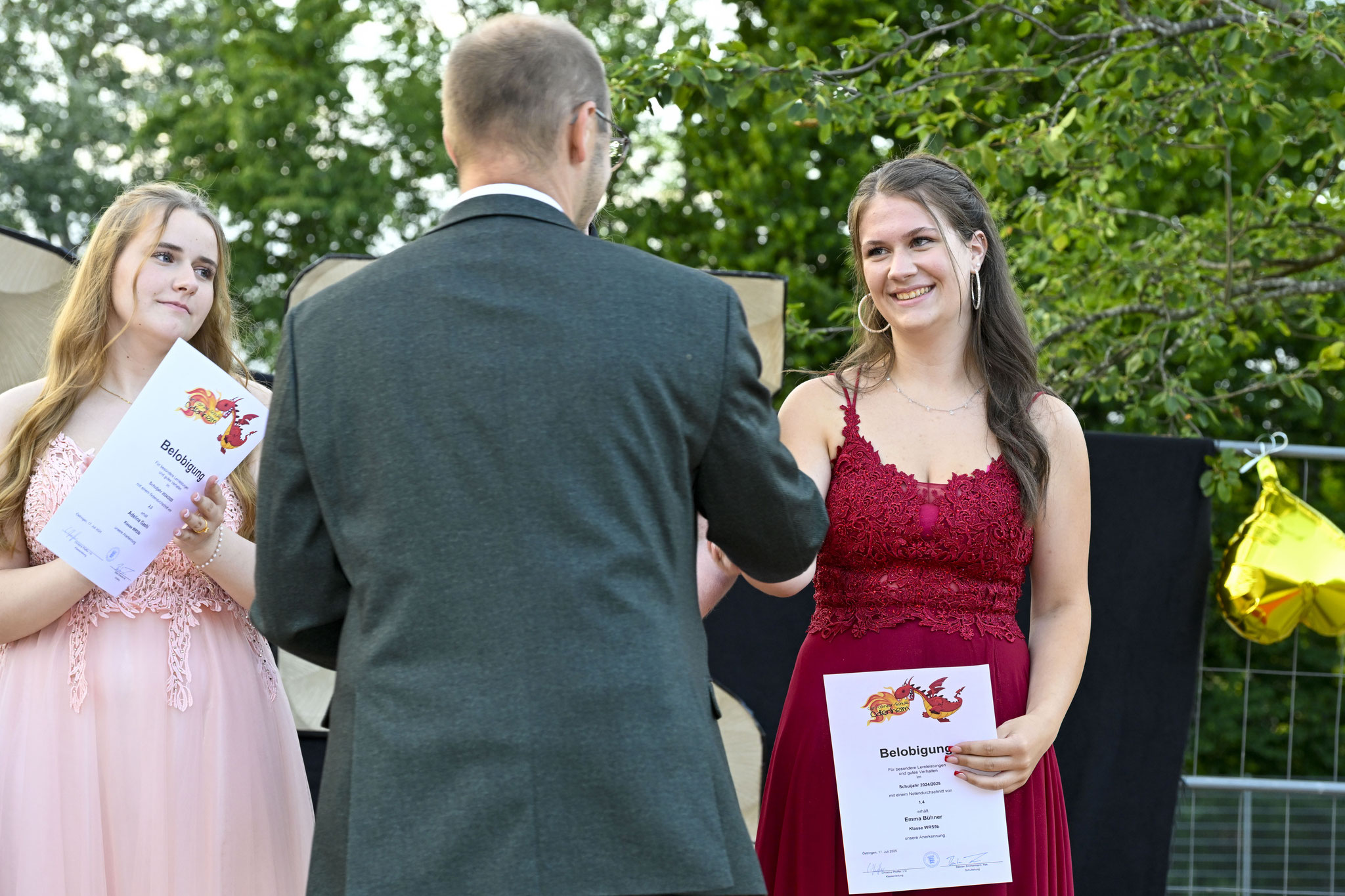 und mit einem tollen Bühnenbild ausgestattet, erstrahlte der obere Schulhof am Abend des 17. Juli 2025 in ganz besonderem Glanz - umso mehr, als schließlich alle Absolventinnen und Absolventen