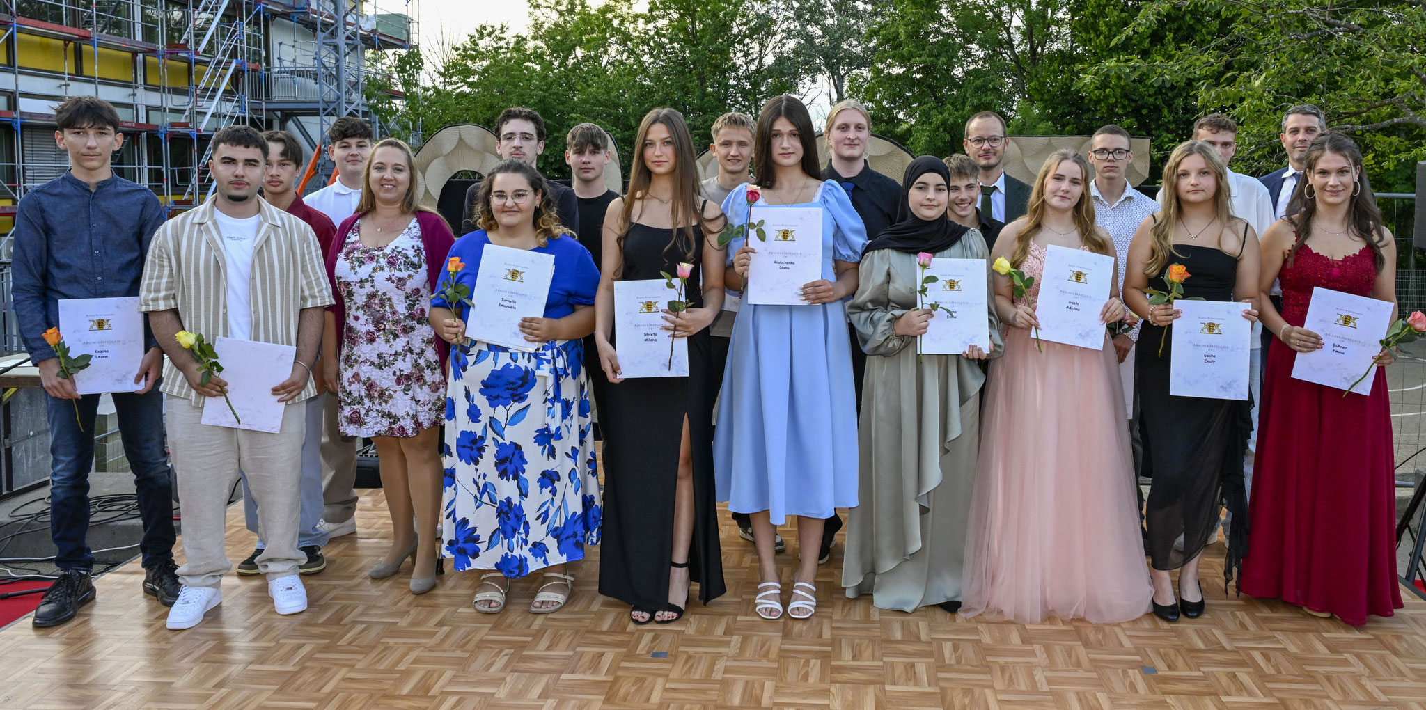 Bei bestem Sommerwetter fand in bereits traditioneller Manier auch in diesem Schuljahr die Abschlussfeier unserer Neunt- und Zehntklässler „open air“ statt. Trotz Baustelle festlich geschmückt
