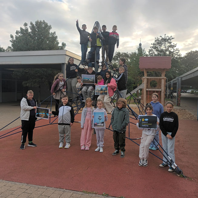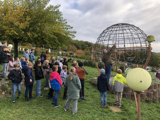 Nur eine gute Stunde dauerte der „Flug“ ins Weltall, den alle Vierklässlerinnen und Viertklässler der Carl-Dänzer-Schule am Freitag, den 17. Oktober 2025, pünktlich um 8 Uhr antraten, bis sie ihr Ziel, die Sternwarte Kraichtal in Oberöwisheim, schließlich erreicht hatten. Da der „Flug“ dann doch eher ein tapferer Fußmarsch durch taufeuchte Wiesen und herbstliche Wälder gewesen war, gab es vor Ort nach einer herzlichen Begrüßung durch Roland Zimmermann, den Sternwart, und einem fröhlichen „Guten Morgen“ der Kinder erstmal eine ausgedehnte Vesperpause.